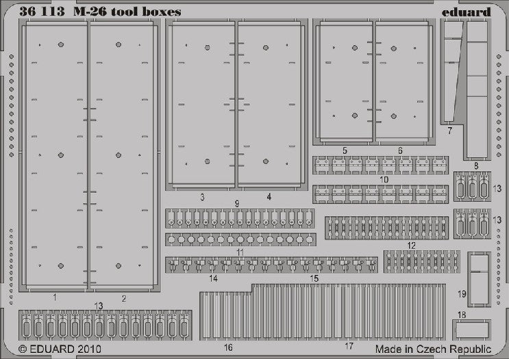 Eduard 36113 1/35 Armor- M26 Tool Boxes for HBO. This is a brand new item in original manufacturer packaging. This is a genuine Eduard product.