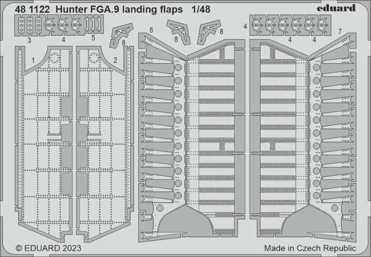 Eduard 481122 1/48 Aircraft- Hunter FGA9 Landing Flaps for ARX. This is a brand new item in original manufacturer packaging. This is a genuine Eduard product.