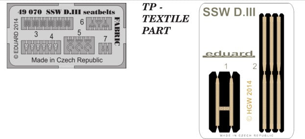 Eduard 49070 1/48 Aircraft- SSW D III Seatbelts Fabric-Type for EDU (Painted) (D)