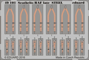 This Eduard 49101 1/48 Aircraft- RAF Late Steel Seatbelts (Painted) is brand new and ships in the manufacturer's original packaging. This is a genuine Eduard product.
