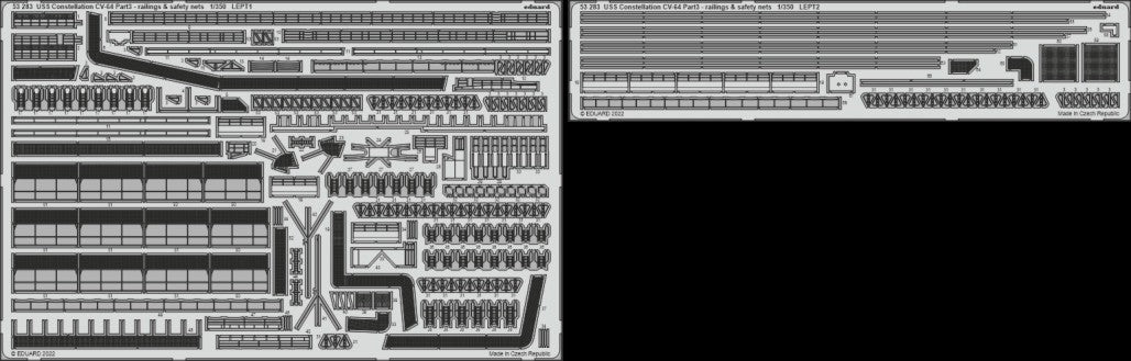 Eduard 53283 1/350 Ship- USS Constellation CV64 Part 3 Railings & Safety Nets for TSM. This is a brand new item in original manufacturer packaging. This is a genuine Eduard product.