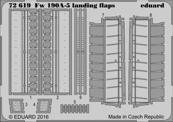 Eduard 72619 1/72 Aircraft- Fw190A5 Landing Flaps for EDU . This is a brand new item in original manufacturer packaging. This is a genuine Eduard product.