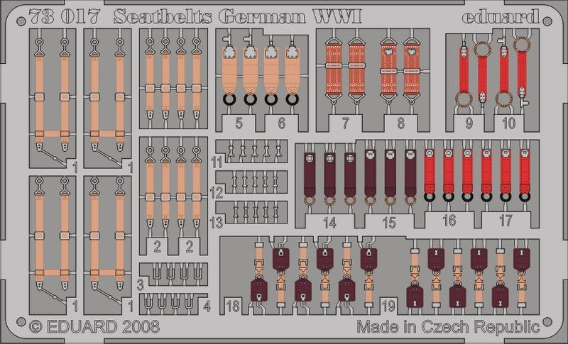 Eduard 73017 1/72 Aircraft- German WWI Seatbelts (Painted). This is a brand new item in original manufacturer packaging. This is a genuine Eduard product.