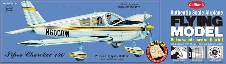 Guillows 307 20" Wingspan Piper Cherokee 140 Laser Cut Kit. This is a brand new item in original manufacturer packaging. This is a genuine Guillows product.