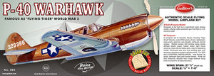 Guillows 405 28" Wingspan P40 Laser Cut Kit. This is a brand new item in original manufacturer packaging. This is a genuine Guillows product.
