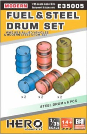 Hero Hobby E35005 1/35 WWII US/Allied & Modern Fuel & Steel Drums (6) . This is a model kit. Assembly, painting, and detailing required. This is a genuine Hero Hobby product.