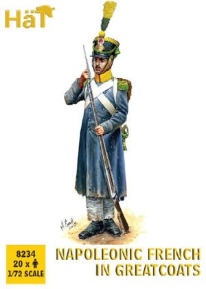 Hat Industries 8234 1/72 Napoleonic French in Greatcoats (20). This is a model kit. Assembly, painting, and detailing required. This is a genuine Hat Industries product.
