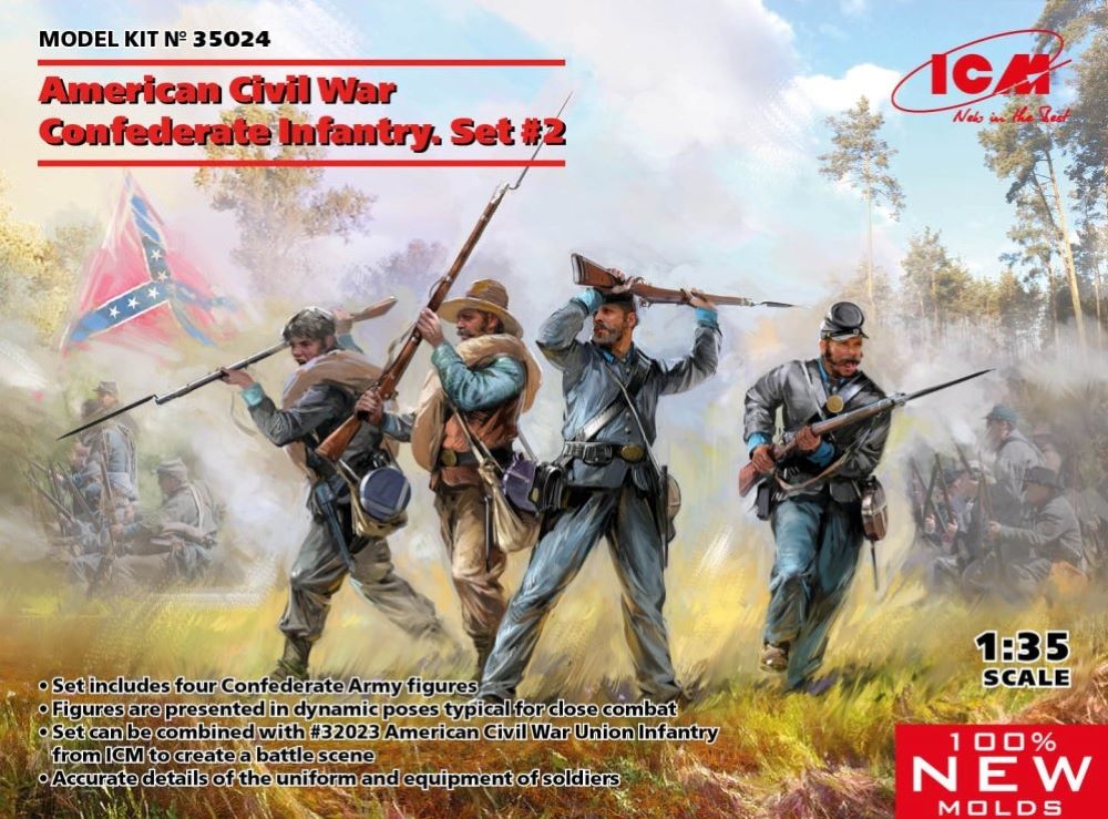 ICM Models 35024 1/35 American Civil War Confederate Infantry Set #2 (4). This is a brand new item in original manufacturer packaging. This is a genuine ICM Models product.