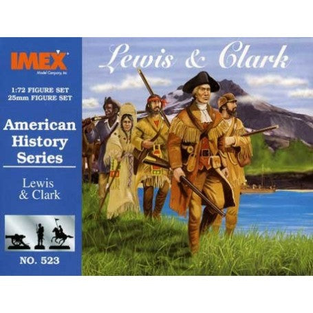 Imex 523 1/72 Lewis & Clark (18, 2 teepees, canoes, horses & acc.). This is a model kit. Assembly, painting, and detailing required. This is a genuine Imex product.
