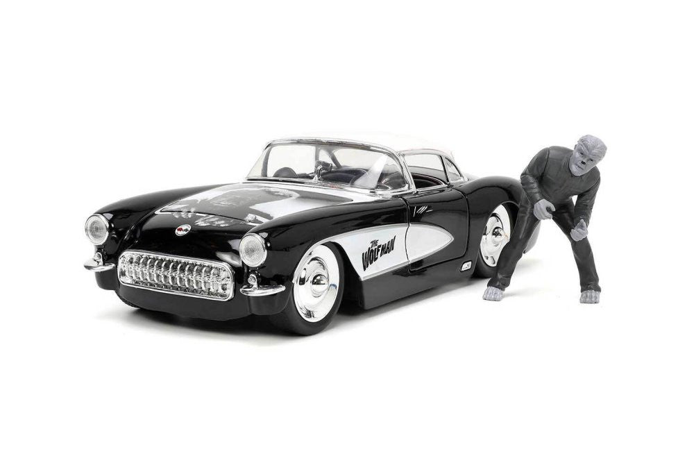 Jada 32195 1/24 1957 Corvette w/Wolfman Figure. This is a brand new item in original manufacturer packaging. This is a genuine Jada product.