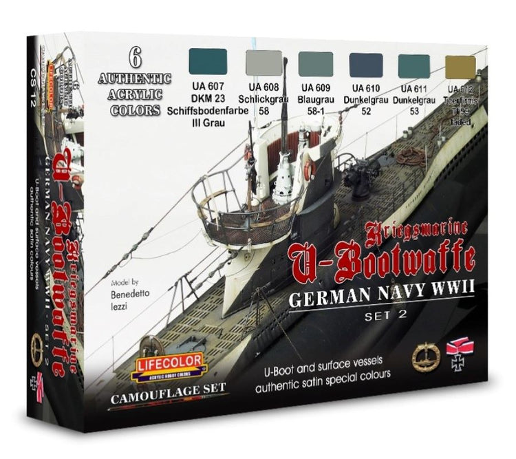 Lifecolor CS12 German WWII Kriegsmarine #2 Camouflage Acrylic Set (6 22ml Bottles). This is a brand new item in original manufacturer packaging. This is a genuine Lifecolor product.