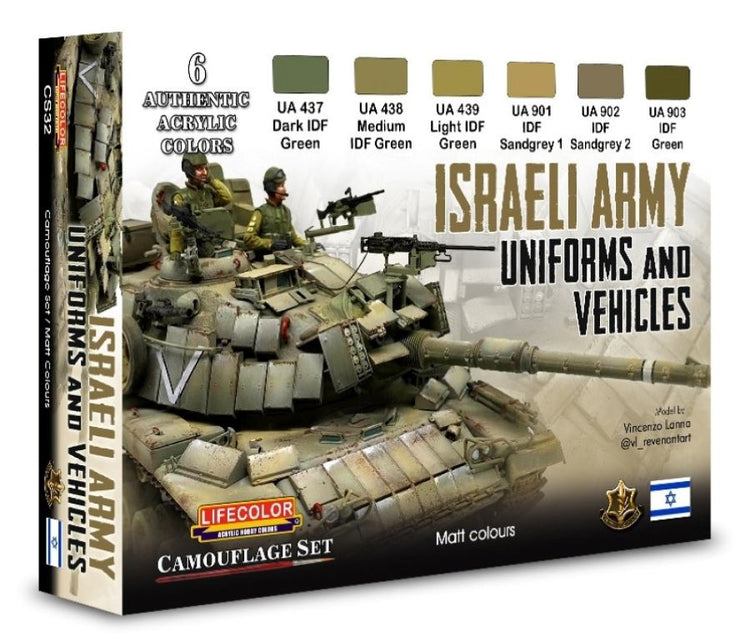 Lifecolor CS32 Israeli Army Vehicles & Uniforms Camouflage Acrylic Set (6 22ml Bottles). This is a brand new item in original manufacturer packaging. This is a genuine Lifecolor product.