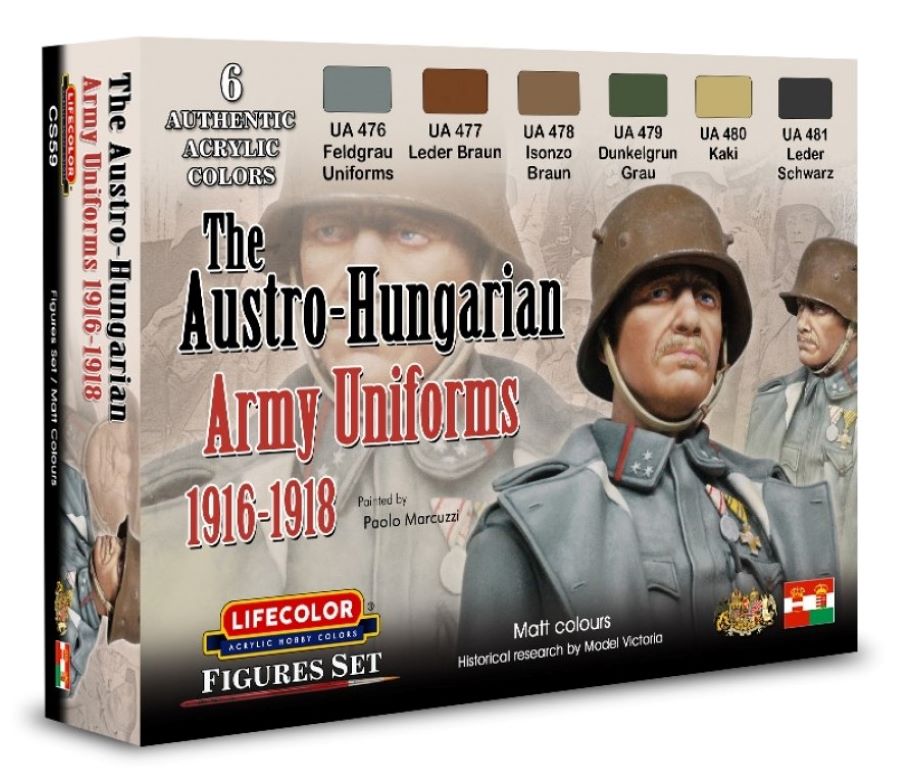 Lifecolor CS59 Austro-Hungarian Army Uniforms 1916-18 Acrylic Set (6 22ml Bottles). This is a brand new item in original manufacturer packaging. This is a genuine Lifecolor product.