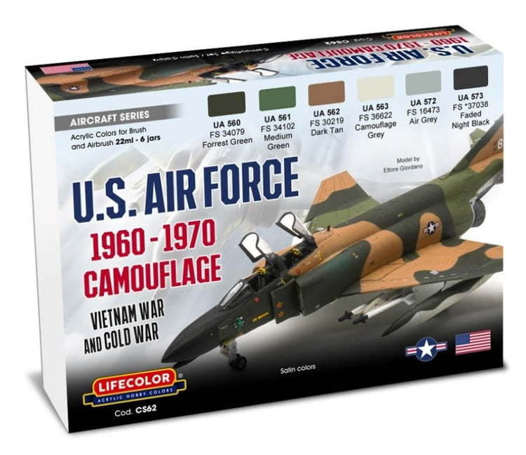 Lifecolor CS62 US Air Force 1960-70 Vietnam & Cold War Camouflage Acrylic Set (6 22ml Bottles). This is a brand new item in original manufacturer packaging. This is a genuine Lifecolor product.