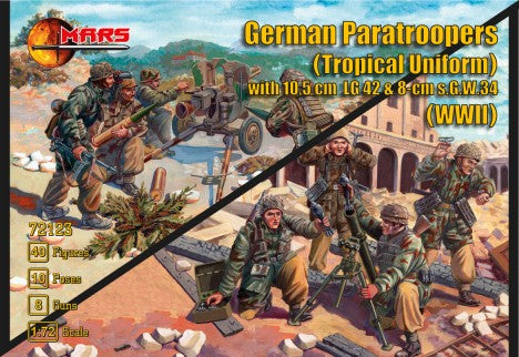 Mars Models 72123 1/72 WWII German Paratroopers Tropical Uniform (40) w/Guns (8). This is a brand new item in original manufacturer packaging. This is a genuine Mars Models product.