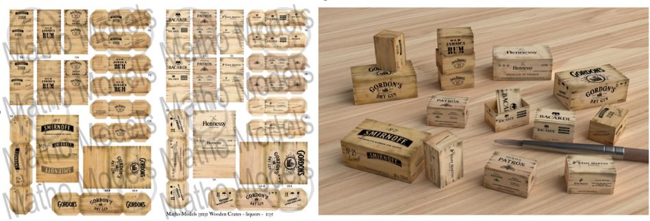 Matho Models 35131 1/35 Wooden-Type Liquors Crates Printed Paper (16) (8 different brands). This is a brand new item in original manufacturer packaging. This is a genuine Matho Models product.
