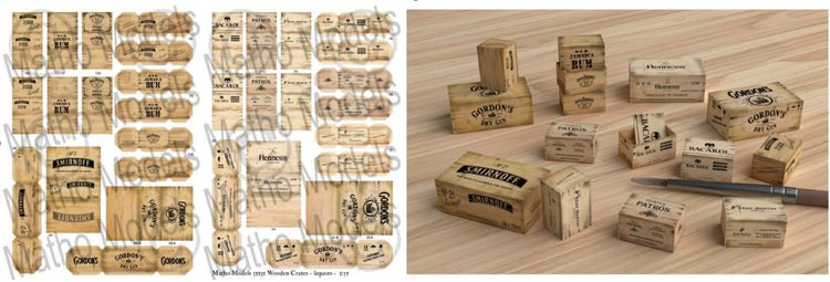 Matho Models 35131 1/35 Wooden-Type Liquors Crates Printed Paper (16) (8 differe