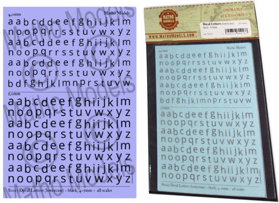 Matho Models 80013 Multi-Scale Black Lower Case 4-5mm Lettering Decals. This is a brand new item in original manufacturer packaging. This is a genuine Matho Models product.