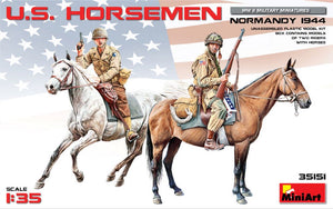 Miniart Models 35151 1/35 WWII US Horsemen Normandy 1944 (2 Mtd). This is a model kit. Assembly, painting, and detailing required. This is a genuine Miniart Models product.