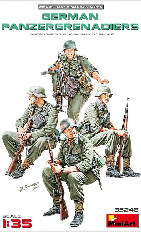 Miniart Models 35248 1/35 WWII German Panzergrenadiers (4). This is a model kit. Assembly, painting, and detailing required. This is a genuine Miniart Models product.