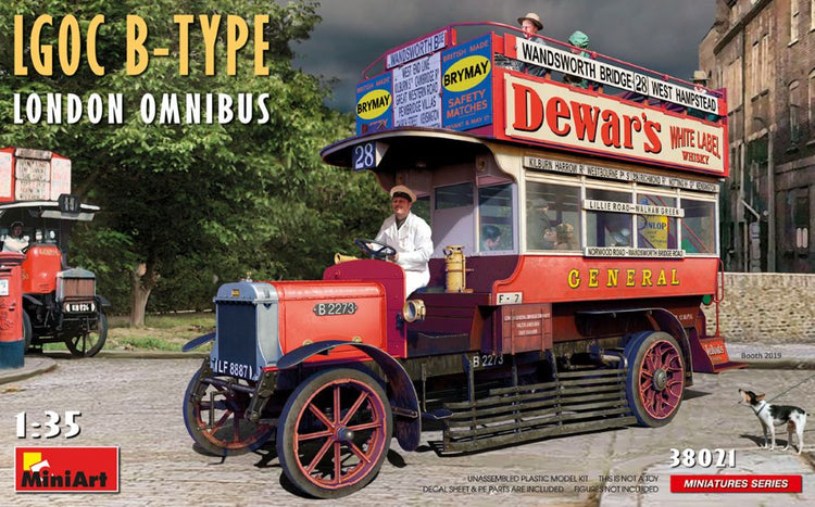 Miniart Models 38021 1/35 LGOC B-Type London Double Decker Omnibus. This is a model kit. Assembly, painting, and detailing required. This is a genuine Miniart Models product.