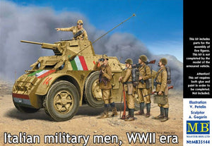 Master Box Models 35144 1/35 WWII Italian Military Crew (5). This is a model kit. Assembly, painting, and detailing required. This is a genuine Master Box Models product.
