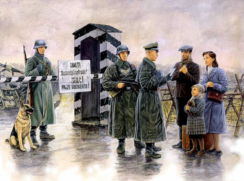 Master Box Models 3527 1/35 Checkpoint German Soldiers & Civilians w/Sentry Box