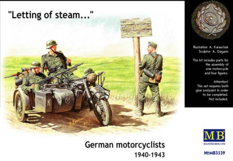Master Box Models 3539 1/35 WWII German BMW R75 Motorcycle & 4 Motorcyclists 194