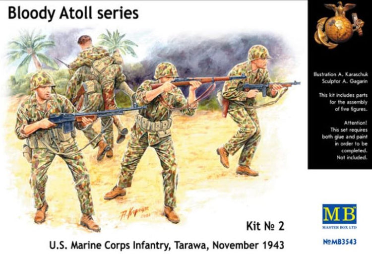 Master Box Models 3543 1/35 USMC Infantry Tarawa 1943 (5). This is a model kit. Assembly, painting, and detailing required. This is a genuine Master Box Models product.
