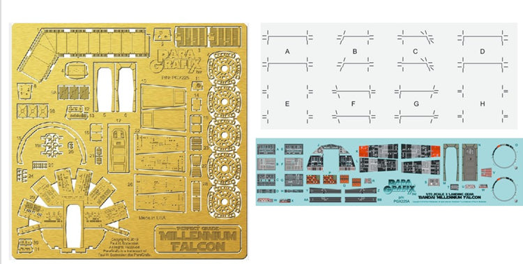 Paragrafix 225 1/75 Bandai Perfect Grade Millennium Falcon Photo-Etch & Decal Set. This is a brand new item in original manufacturer packaging. This is a genuine Paragrafix product.