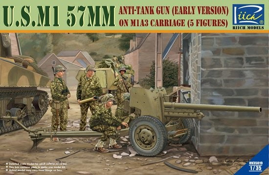 Riich Models 35019 1/35 US M1 57mm Anti-Tank Gun Early Version on M1A3 Carriage w/5 Crew. This is a brand new item in original manufacturer packaging. This is a genuine Riich Models product.