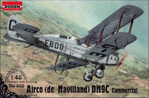 Roden 435 1/48 Airco (DeHavilland) DH9C Commercial Biplane. This is a model kit. Assembly, painting, and detailing required. This is a genuine Roden product.