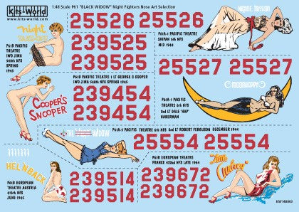 Warbird Decals 148003 1/48 P61 Night Take Off, Cooper's Snooper, Virgin Widow, Nightie Mission, Moonhappy, Hel'n Back, Little Audrey. This is a brand new item in original manufacturer packaging. This is a genuine Warbird Decals product.