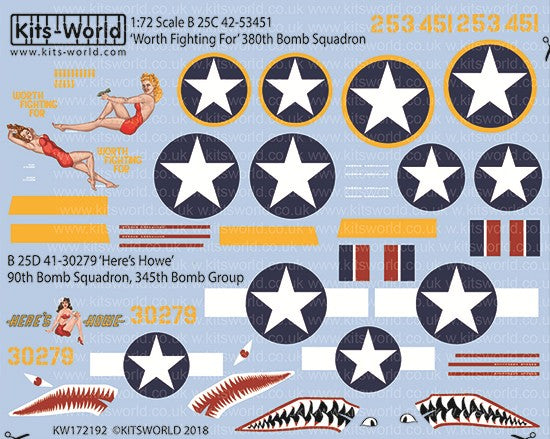 Warbird Decals 172192 1/72 B25C/D Worth Fighting For 380th BS, Here's Howe 90th BS/345th BG