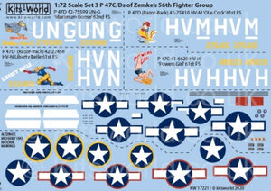 Warbird Decals 172211 1/72 P47C/D 56th FG of Zemke's Maximum Goose UN-G 62nd FS, OLe Cock HV-M 61st FS, Liberty Belle 61st FS, Powers Girl HV-H 61st FS Late 1943