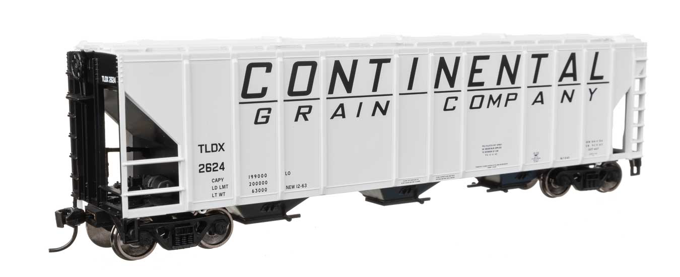 Walthers Mainline 49427 HO Scale 50' Pullman-Standard PS2-CD 4427 3-Bay Covered Hopper - Ready to Run -- Continental Grain Co TLDX #2624